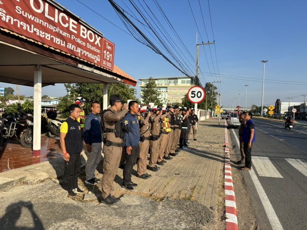10 ม.ค.2568 เวลา 16.00 น. พ.ต.อ.ประวิทย์ โทหา ผกก.สภ.สุวรรณภูมิ พ.ต.ท.ณัฐชัย ผาตากแดด รอง ผกก.ป.สภ.สุวรรณภูมิ พ.ต.ท.หนึ่งตะวัน อุปชิตร สวป.สภ.สุวรรณภูมิ พร้อมข้าราชการตำรวจ และฝ่ายปกครอง ร่วมปล่อยแถวระดมกวาดล้างป้องกันปราบปรามอาชญากรรม