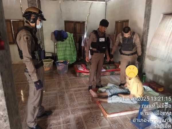 รอง สว.(ป.)สภ.สุวรรณภูมิ ปฏิบัติหน้าที่ร้อยเวรป้องกันปราบปราม พร้อมชุดสืบสวน สภ.สุวรรณภูมิ ออกตรวจระงับเหตุทะเลาะวิวาทภายในครอบครัว ณ หมู่ที่ 7 ต.เมืองทุ่ง อ.สุวรรณภูมิ จ.ร้อยเอ็ด