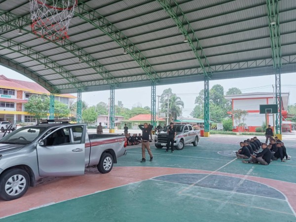 2 พ.ค.2568 เวลา 11.00 น. พ.ต.ท.ณัฐชัย ผาตากแดด รอง ผกก.ป.สภ.สุวรรณภูมิ, พ.ต.ท.หนึ่งตะวัน อุปชิตร สวป.สภ.สุวรรณภูมิ พร้อมชุดครูฝึกชุดฝึกได้ทำการฝึกท่าบุคคลมือเปล่าและยุทธวิธี ที่สนามโดมโรงเรียนสุวรรณภูมิวิทยาลัย