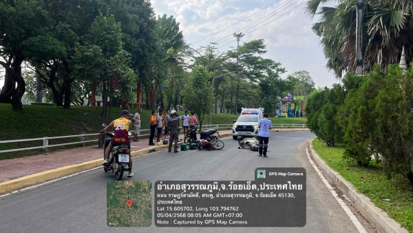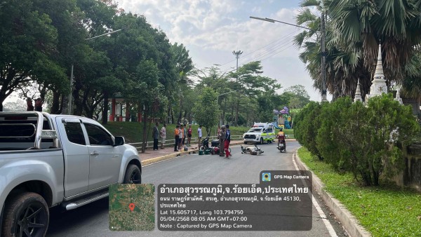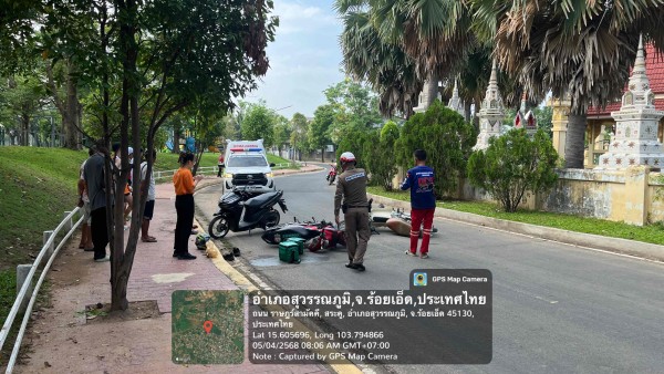 4 พ.ค.2568 เวลา 08.00 น. ร.ต.ต.วินัย ละคร รอง สว.(จร.) สภ.สุวรรณภูมิ, ส.ต.ท.ธนากร ทานอก ผบ.หมู่(จร.) สภ.สุวรรณภูมิ ตรวจสอบอุบัติเหตุรถชน หน้าวัดเจริญราษฎร์ เป็นรถจักรยานยนต์กับรถจักรยานยนต์ กู้ภัยนำผู้บาดเจ็บส่งโรงพยาบาลสุวรรณภูมิ ไม่มีทรัพย์สินทางราชการเสียหาย ไม่กีดขวางการจราจร
