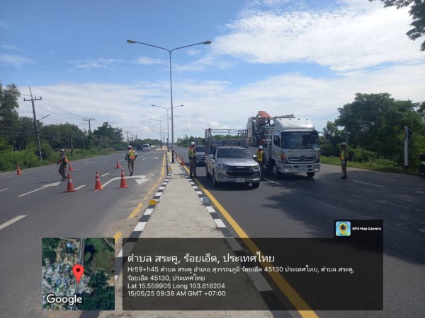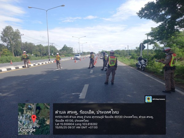 15 พ.ค.2568 เวลา 09.30 น. ภายใต้ อำนวยการโดย พ.ต.อ.พงษ์ศักดิ์ เตยหล้า ผกก.สภ.สุวรรณภูมิ พ.ต.ท.ณัฐชัย ผาตากเเดด รอง ผกก.ป.สภ.สุวรรณภูมิ ขอรายงานการตั้งจุดตรวจฯ ดังนี้