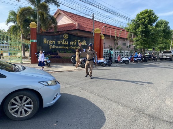 20 พ.ค.2568 เวลา 08.00 น. ร.ต.อ.ยงค์ชัย กรมแสนพิมพ์ รอง สวป.สภ.สุวรรณภูมิ อำนวยความสะดวกการจราจร หน้า รร.อนุบาลเมืองใหม่สุวรรณภูมิ การจราจรคล่องตัว เหตุการณ์ปกติ