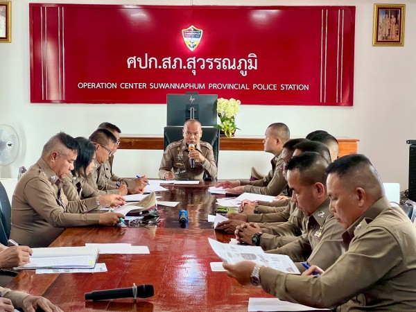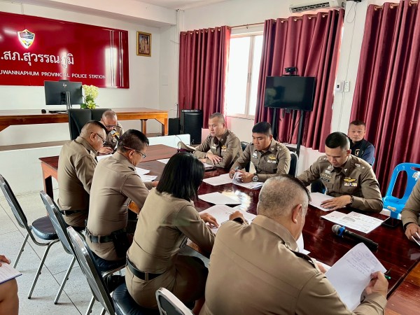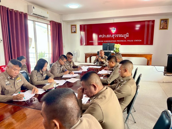 27 พ.ค.2568 เวลา 09.30 น. พ.ต.อ.พงษ์ศักดิ์ เตยหล้า ผกก.สภ.สุวรรณภูมิ, พ.ต.ท.ไชยา นามสิมมา รอง ผกก.(สอบสวน)ฯ พ.ต.ท.ชาติชาย ลีลากุล รอง ผกก.สส.ฯ พ.ต.ท.ณัฐชัย ผาตากแดด รอง ผกก.ป.ฯ พร้อมด้วยข้าราชการตำรวจในสังกัด สภ.สุวรรณภูมิ ร่วมประชุมบริหารประจำเดือน เพื่อรับมอบนโยบายฯ และรับฟังข้อชี้แจงจากผู้บังคับบัญชา นำเสนอผลการปฏิบัติ ณ ห้องประชุม สภ.สุวรรณภูมิ