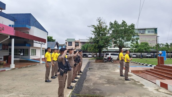 30 พ.ค.2568 เวลา 08.00 น. พ.ต.ท.เดชาวัต ชัยภูมิ สว.(สอบสวน) สภ.สุวรรณภูมิ พนักงานสอบสวนเวร พร้อมด้วยร้อยเวรปราบปราม ได้เรียกแถวชุดเวรบูรณาการ ประจำวัน สิบเวร สายตรวจ สืบสวน จราจร ตรวจความพร้อมการแต่งกาย อุปกรณ์การปฏิบัติหน้าที่ กำชับให้มีความพร้อมในการปฏิบัติตลอดเวลา ทำงานเป็นทีม ใช้ยุทธวิธีที่มีความเหมาะสมในการระงับเหตุ โดยเน้นให้ผู้ปฏิบัติหน้าที่บน สภ.ฯ ให้เตรียมความพร้อมหากมีเหตุการณ์เกิดขึ้นที่ตั้งหน่วย มอบหมายภารกิจ เสร็จแล้วจึงได้ปล่อยแถวออกปฏิบัติหน้าที่ต่อไป