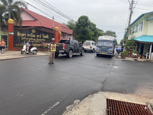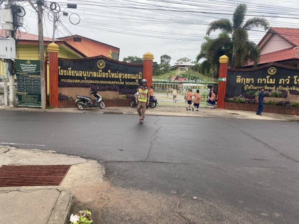 13 มิ.ย.2568 เวลา 07.45 น. ร.ต.อ.ยงค์ชัย กรมแสนพิมพ์ รอง สวป.สภ.สุวรรณภูมิ ปฏิบัติหน้าที่ร้อยเวรจราจร พร้อมเจ้าหน้าที่ตำรวจจราจรเวร ออกปฏิบัติหน้าที่อำนวยความสะดวกการจราจรหน้าสถานศึกษาช่วงชั่วโมงเร่งด่วน(เช้า) จราจรคล่องตัว เหตุการณ์ปกติ