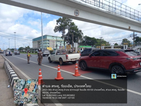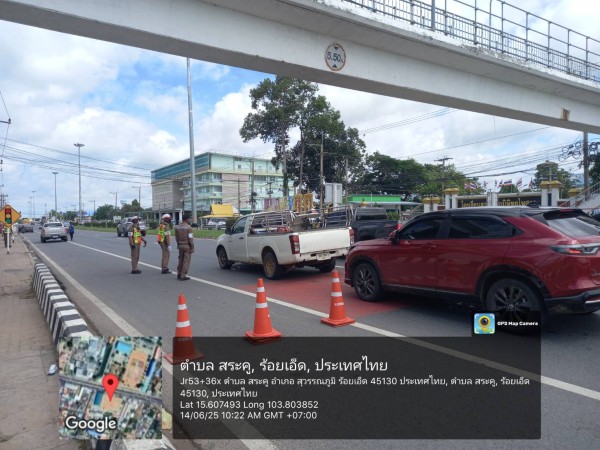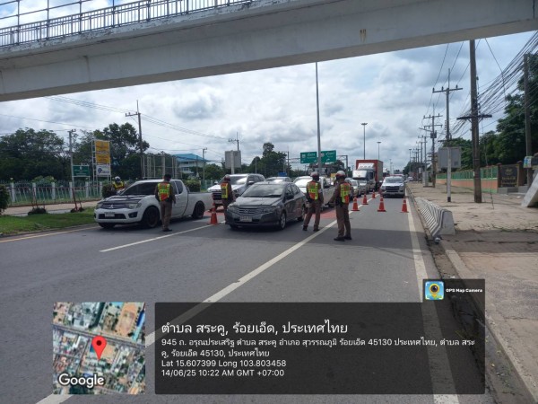14 มิ.ย.2568 เวลา 09.30 น. ภายใต้อำนวยการโดย พ.ต.อ.พงษ์ศักดิ์ เตยหล้า ผกก.สภ.สุวรรณภูมิ พ.ต.ท.ณัฐชัย ผาตากเเดด รอง ผกก.ป.สภ.สุวรรณภูมิ ขอรายงานการตั้งจุดตรวจฯ ดังนี้