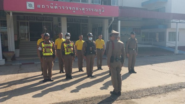 17 มิ.ย.2568 ร.ต.อ.บุญเรือง เชิงหอม รอง สว.(สอบสวน) สภ.สุวรรณภูมิ ได้เรียกแถวชุดเวรบูรณาการ สิบเวร สายตรวจจักรยานยนต์ สืบสวน จราจร ตรวจจำนวน ความพร้อมการแต่งกาย อุปกรณ์การปฏิบัติหน้าที่ กำชับให้มีความพร้อมในการปฏิบัติตลอดเวลา ทำงานเป็นทีม ใช้ยุทธวิธีที่มีความเหมาะสมในการระงับเหตุ โดยเน้นให้ผู้ปฏิบัติหน้าที่บน สภ.ฯ ให้เตรียมความพร้อมหากมีเหตุการณ์เกิดขึ้นที่ตั้งหน่วย มอบหมายภารกิจ เสร็จแล้วจึงได้ปล่อยแถวออกปฏิบัติหน้าที่แต่เวลานี้