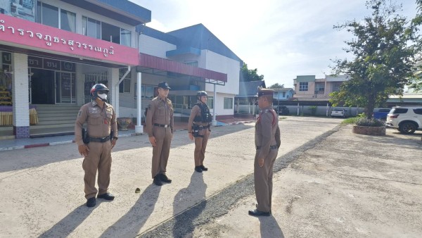 22 มิ.ย.2568 เวลา 08.00 น. พ.ต.ท.เดชาวัต ชัยภูมิ สว.(สอบสวน) สภ.สุวรรณภูมิ ได้เรียกแถวชุดเวรบูรณาการ สิบเวร สายตรวจจักรยานยนต์ สืบสวน จราจร ตรวจจำนวน ความพร้อมการแต่งกาย อุปกรณ์การปฏิบัติหน้าที่ กำชับให้มีความพร้อมในการปฏิบัติตลอดเวลา ทำงานเป็นทีม ใช้ยุทธวิธีที่มีความเหมาะสมในการระงับเหตุ โดยเน้นให้ผู้ปฏิบัติหน้าที่บน สภ.ฯ ให้เตรียมความพร้อมหากมีเหตุการณ์เกิดขึ้นที่ตั้งหน่วย มอบหมายภารกิจ เสร็จแล้วจึงได้ปล่อยแถวออกปฏิบัติหน้าที่แต่เวลานี้