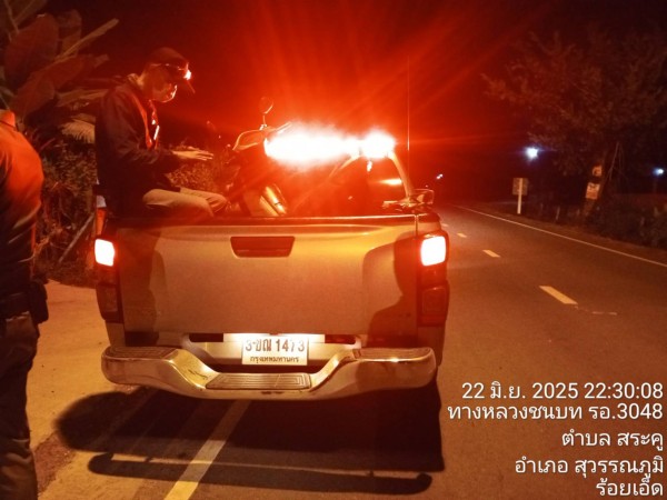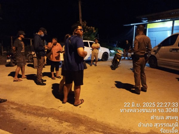 22 มิ.ย.2568 เวลา 22.15 น. ร.ต.ท.ประนม สมภูงา รอง สว.(ป.)สภ.สุวรรณภูมิ ปฏิบัติหน้าที่ร้อยเวรป้องกันปราบปราม พร้อม ว.30 สายตรวจฯ