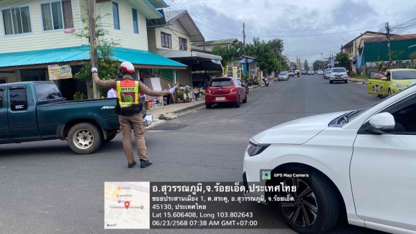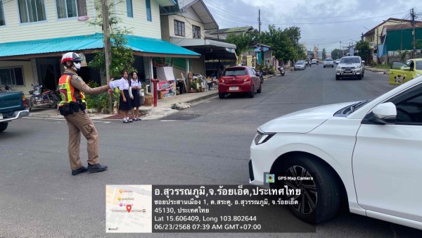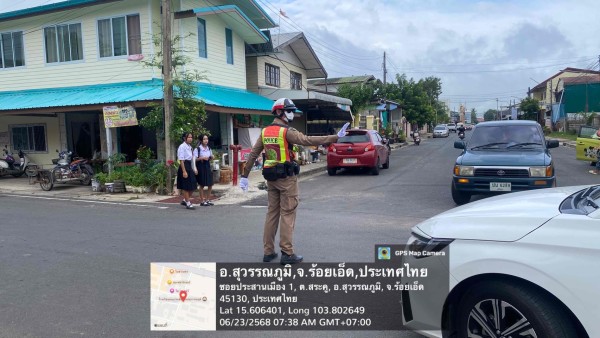 23 มิ.ย.2568 เวลา 07.30 น. ส.ต.อ.พงศ์เทพ ยมรัตน์ อำนวยความสะดวกการจราจรโดยรอบ รร.อนุบาลเมืองใหม่สุวรรณภูมิ การจราจรคล่องตัว เหตุการณ์ปกติ
