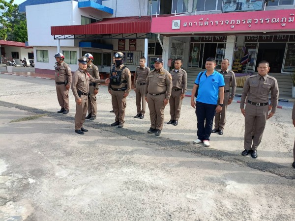 24 มิ.ย.2568 เวลา 08.00 น. ร.ต.อ.ณัชพล ดวงกางกอ รอง สว.(สอบสวน) สภ.สุวรรณภูมิ เรียกแถวเวรบูรณาการ เคารพธงชาติ ประกอบด้วย ร้อยเวร20 ร้อยเวร30 เวรสายตรวจ จยย.เวรจราจร เวรสืบสวน เวรผู้ช่วย30 ประจำวัน สิบเวร สื่อสาร นร.นายสิบฝึกงานฯ ตรวจจำนวน ความพร้อมการแต่งกาย อุปกรณ์การปฏิบัติหน้าที่ กำชับให้มีความพร้อมในการปฏิบัติได้ตลอดเวลา ทำงานเป็นทีม ใช้ยุทธวิธีที่มีความเหมาะสม ในการระงับเหตุ โดยเน้นให้ผู้ปฏิบัติหน้าที่บน สภ.ฯ ให้เตรียมความพร้อม หากมีเหตุการณ์เกิดขึ้นที่ตั้งหน่วย มอบหมายภารกิจเสร็จแล้ว จึงได้ปล่อยแถวออกปฏิบัติตามหน้าที่ต่อไป