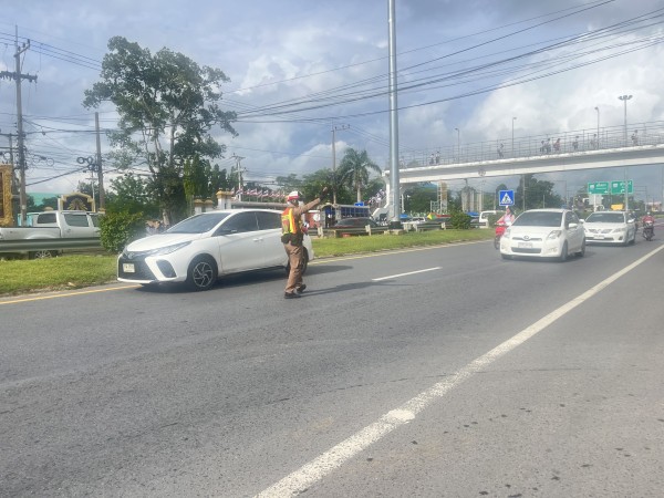 27 มิ.ย.2568 เวลา 16.00 น. ส.ต.ท.ธนากร ทานอก ผบ.หมู่(จร.) สภ.สุวรรณภูมิ ปฏิบัติหน้าที่อำนวยความสะดวกการจราจรหน้าโรงเรียนอนุบาลเมืองใหม่สุวรรณภูมิ การจราจรคล่องตัว เหตุการณ์ปกติ