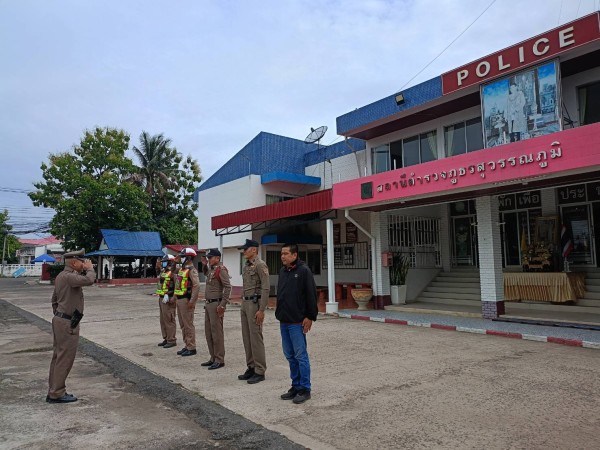 5 ก.ค.2568 เวลา 08.00 น. ร.ต.อ.ณัชพล ดวงกางกอ รอง สว.(สอบสวน) สภ.สุวรรณภูมิ เรียกแถวเวรบูรณาการ เคารพธงชาติ ประกอบด้วย ร้อยเวร30 เวรสายตรวจ จยย. เวรจราจร เวรสืบสวน เวรผู้ช่วย30 ประจำวัน สิบเวร สื่อสารฯ ตรวจจำนวน ความพร้อมการแต่งกาย อุปกรณ์การปฏิบัติหน้าที่ กำชับให้มีความพร้อมในการปฏิบัติได้ตลอดเวลา ทำงานเป็นทีม ใช้ยุทธวิธีที่มีความเหมาะสม ในการระงับเหตุ โดยเน้นให้ผู้ปฏิบัติหน้าที่บน สภ.ฯ ให้เตรียมความพร้อม หากมีเหตุการณ์เกิดขึ้นที่ตั้งหน่วย มอบหมายภารกิจเสร็จแล้ว จึงได้ปล่อยแถวออกปฏิบัติตามหน้าที่ต่อไป