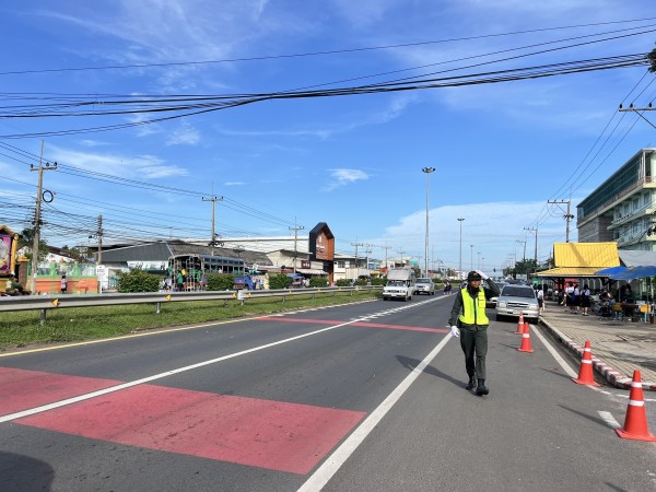 7 ก.ค.68 เวลา 07.40 น. ส.ต.ท.ธนาธร ทานอก ผบ.หมู่(จร.) สภ.สุวรรณภูมิ ว.4 การจราจร หน้า ร.ร.สุวรรณภูมิพิทยไพศาล การจราจรคล่องตัว เหตุการณ์ปกติ