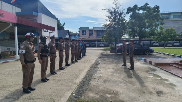 8 ต.ค.68 เวลา 08.00 น. พ.ต.ท.เดชาวัต ชัยภูมิ สว.(สอบสวน) สภ.สุวรรณภูมิ ได้เรียกแถวชุดเวรบูรณาการ สิบเวร สายตรวจจักรยานยนต์ สืบสวน จราจร ตรวจจำนวน ความพร้อมการแต่งกาย อุปกรณ์การปฏิบัติหน้าที่ กำชับให้มีความพร้อมในปฏิบัติตลอดเวลา ทำงานเป็นทีม ใช้ยุทธวิธีที่มีความเหมาะสมในการระงับเหตุ โดยเน้นให้ผู้ปฏิบัติหน้าที่บน สภ.ฯ ให้เตรียมความพร้อมหากมีเหตุการณ์เกิดขึ้นที่ตั้งหน่วย มอบหมายภารกิจ เสร็จแล้วจึงได้ปล่อยแถวออกปฏิบัติหน้าที่แต่เวลานี้