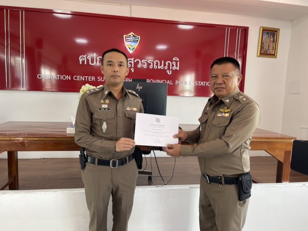 เมื่อวันที่ 25 พ.ย.2568 เวลา 11.00 น. พ.ต.อ.พงษ์ศักดิ์ เตยหล้าชีวาไทย ผกก.สภ.สุวรรณภูมิ มอบหมายให้ พ.ต.ท.ไชยา นามสิมมา รอง ผกก.(สอบสวน) สภ.สุวรรณภูมิ มอบประกาศเกียรติคุณและเครื่องหมายเข็มเชิดชูเกียรติ “ตำรวจสีขาว ดาวคุณธรรม” แก่ข้าราชการตำรวจ สภ.สุวรรณภูมิ ที่ประพฤติปฏิบัติดีเยี่ยมตามประมวลจริยธรรมและจรรยาบรรณของตำรวจ สมควรได้รับการยกย่องเชิดชูเกียรติเพื่อเป็นแบบอย่างที่ดี ประจำปีงบประมาณ พ.ศ.2568 จากสำนักงานตำรวจแห่งชาติ ณ ห้องประชุม สภ.สุวรรณภูมิ