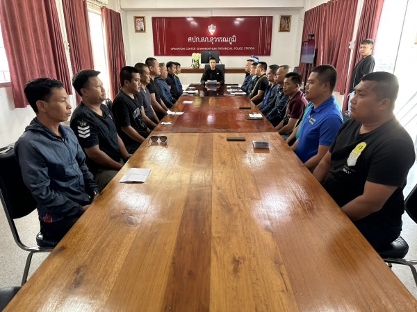 9 ธ.ค.2568 เวลา 14.00 น. พ.ต.ท.หนึ่งตะวัน อุปชิตร รอง ผกก.สส.สภ.สุวรรณภูมิ พ.ต.ท.จันที คำวิไชย สว.สส.สภ.สุวรรณภูมิ ประชุมชุดสืบสวน (เอราวัณ) สุวรรณภูมิ ชี้แจงมอบโยบาย ปิดล้อมตรวจค้น ทำลายเครือข่ายยาเสพติด เงินกู้นอกระบบ อาวุธปืน การพนัน หมายจับ ภายในเขตพื้นที่ อำเภอสุวรรณภูมิ ตามนโยบายที่ได้รับมอบหมาย สอบถามแลกเปลี่ยนข้อมูล เฝ้าติดตาม ออกเคสซิ่ง บ้านเป้าหมาย รวบรวมข้อมูล พร้อม ว.4 ในเขตพื้นที่เพื่อดำเนินการตามกฎหมาย ต่อไป