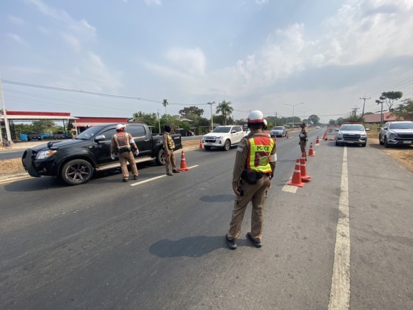 พ.ต.อ.พงษ์ศักดิ์ เตยหล้าชีวาไทย ผกก.สภ.สุวรรณภูมิ พ.ต.ท.ณัฐชัย ผาตากเเดด รอง ผกก.ป.สภ.สุวรรณภูมิ รายงานการตั้งจุดตรวจฯ ดังนี้