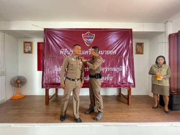 11 ก.พ.2568 เวลา 10.00 น. .ต.อ.ประวิทย์ โทหา ผกก.สภ.สุวรรณภูมิ เป็นประธานในพิธีประดับเครื่องหมายยศ ช้าราชการตำรวจในสังกัด ที่ได้เลื่อนยศสูงขึ้น จำนวน 9 นาย ณ ห้องประชุม ศปก. สภ.สุวรรณภูมิ พร้อมข้าราชการตำรวจในสังกัด สภ.สุวรรณภูมิ ร่วมเป็นเกียรติในพิธี