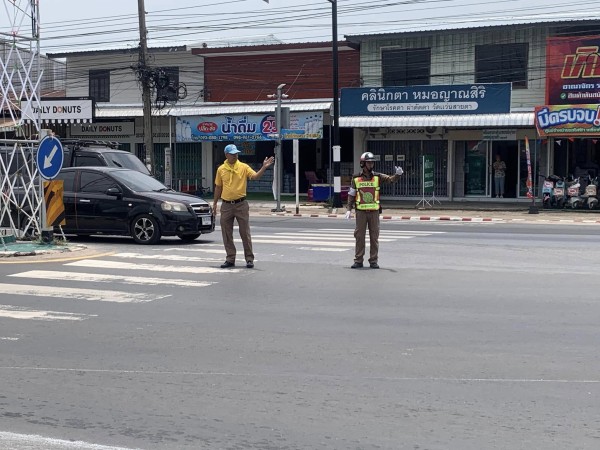 ประชาสัมพันธ์ผู้ที่สัญจรไปมาถนนอรุณประเสริฐ( ทางหลวงแผ่นดินหมายเลข 202 ) ช่วงโค้ง รร.สุวรรณภูม...