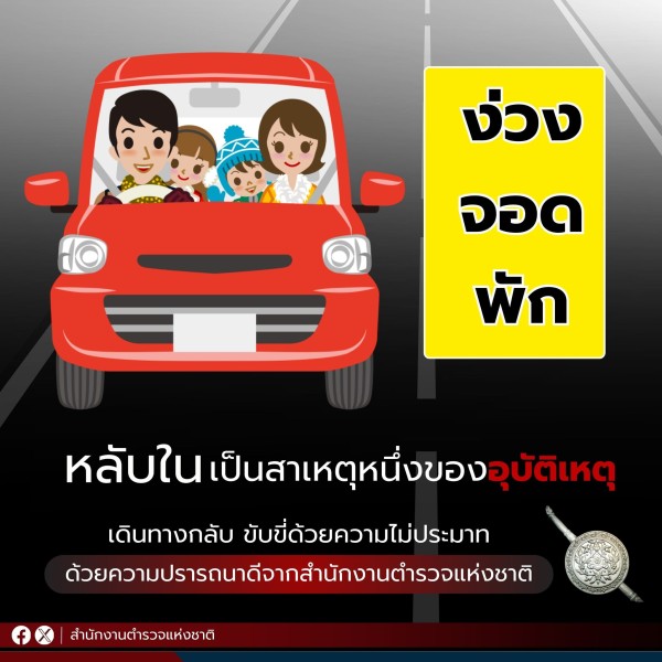 ⚠️ ง่วงจอดพัก เดินทางกลับ ขับขี่ด้วยความไม่ประมาท "หลับใน" เป็นสาเหตุหนึ่งของอุบัติเหตุบนถนน...