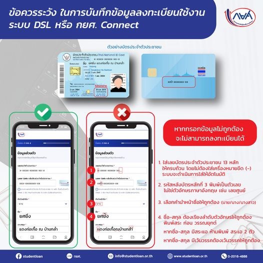 กยศ. แจ้งข้อควรระวัง ในการบันทึกข้อมูลลงทะเบียนใช้งาน ระบบ DSL หรือ กยศ. Connect