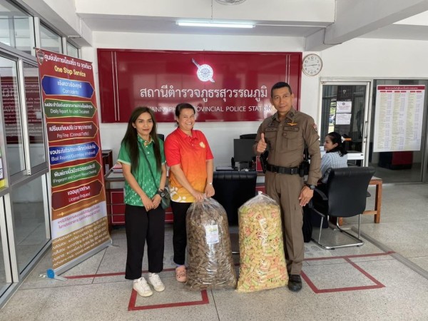 12 ม.ค.67 พ.ต.อ.ประวิทย์ โทหา ผกก.สภ.สุวรรณภูมิ รับมอบขนมจากตัวแทน นางพูลศรี อ่อนภูงา นายกอง...